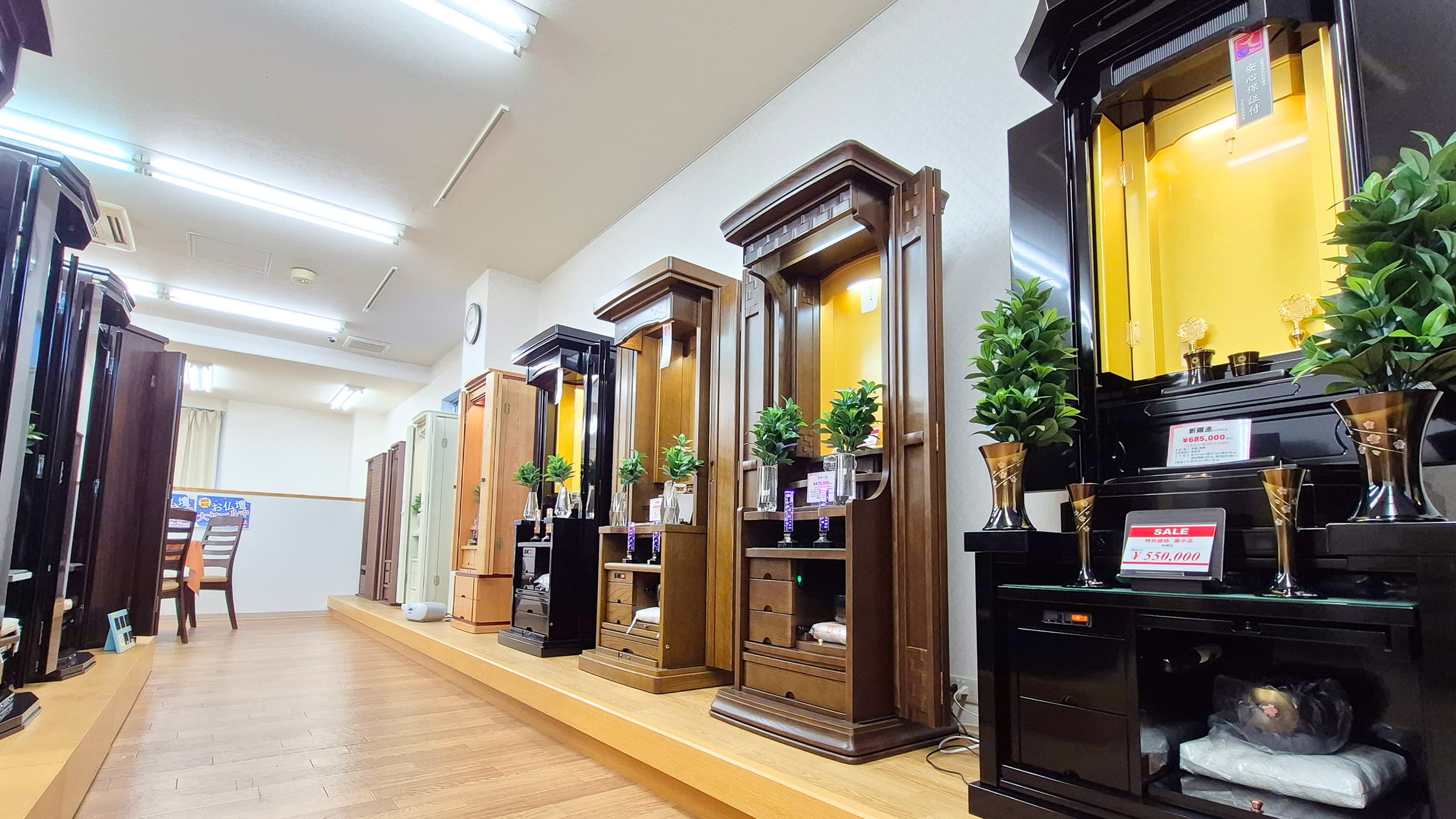 関西エリアにおける拠点として、お仏壇を中心に、書籍・お念珠・お土産品などを幅広く展示しています。実際に商品をご覧いただきながら、落ち着いた環境でご相談いただける店舗です。