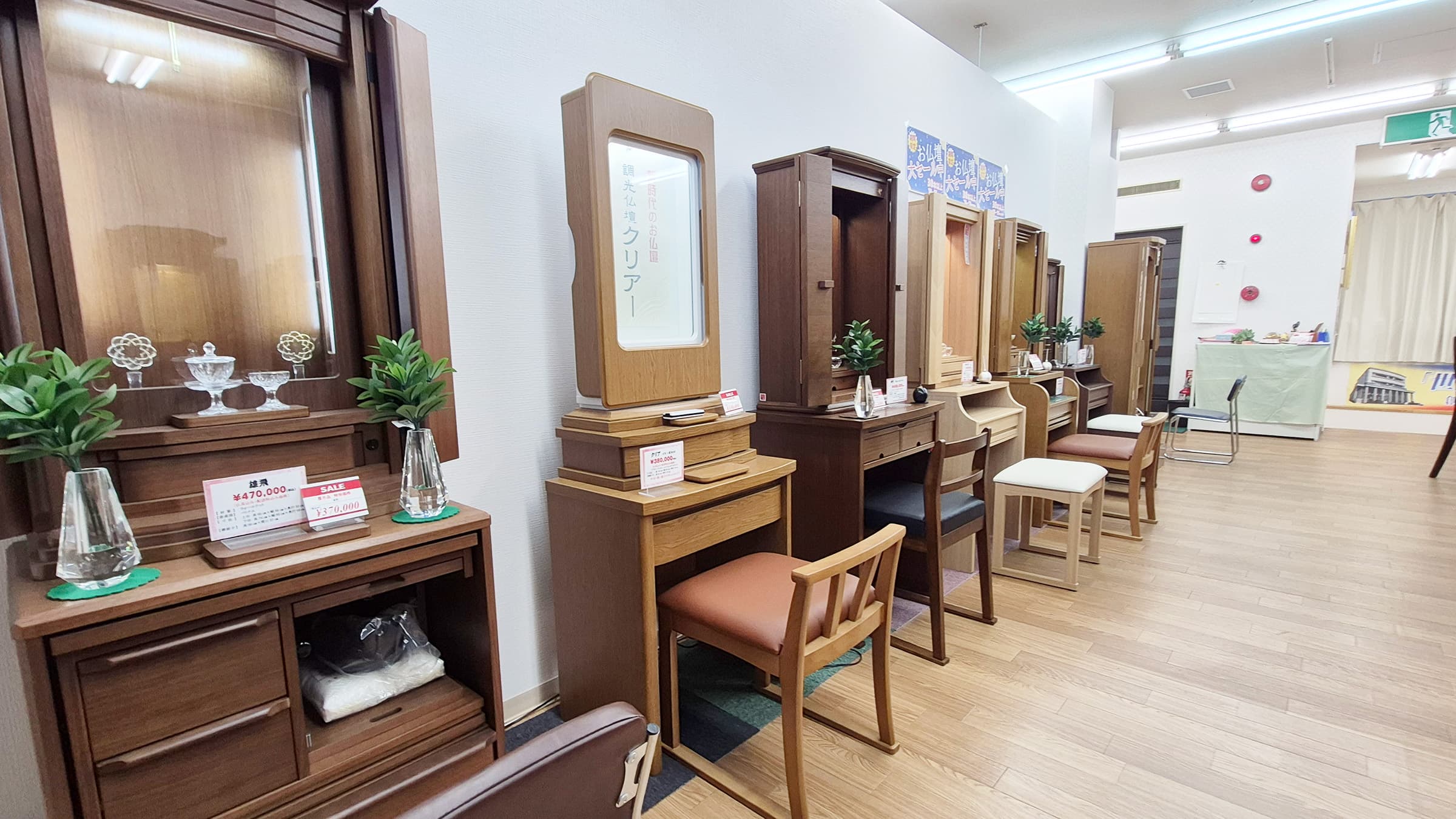 関西エリアにおける拠点。お仏壇を中心に、書籍・お念珠・お土産品などを幅広く展示